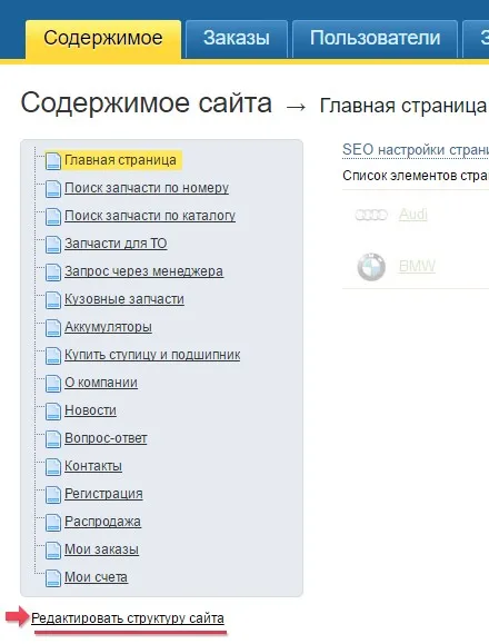 После того, как необходимое количество деталей было заведено в каталог, необходимо сделать его видимым на сайте, включив каталог с помощью переключателя рядом названием: